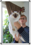 Morphology: Cookie has beautiful blue eyes, a nice warm chocolate point milk color, a soft silky middle coat (as all Birman should have - it’s being lost in many lines that used too much Persan to create the new colors - a roman nose, a strong chin, a long tail. She is more the elongated style than the compact one (Fly is the compact style) and reminds more of the siamese size than the Persan.