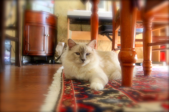 Galiléo is a beautiful Birman from France. He was born in France on August 14, 2011. He is a lilac-point male, therefore, he carries the chocolate factor gene. Thanks to the breeders. His father comes from the Netherlands and his mother from Belgium. Both are chocolate-point. He is a very sweet, active purring boy. He has beautiful blue-eyes and already a good size for his age. Galileo has a loving personality and requires attention. He is always behind me, purring, scratching at the door if he cannot be with me. He is also very talkative and has a unique voice to get my attention.